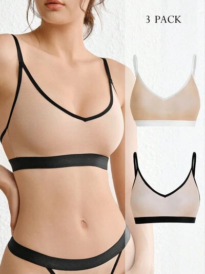 Leisure 3pcs Solid Color Mesh Bra Lingerie-24%