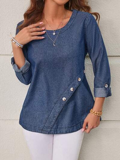 Women's Plush Patchwork Button Front Denim Jacket-25%