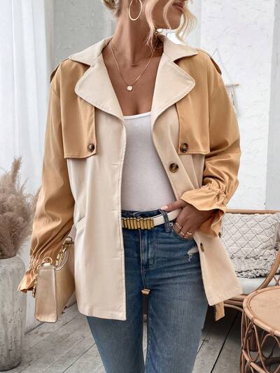 Women's Color Block Collar Patchwork Double Breasted Coat-60%