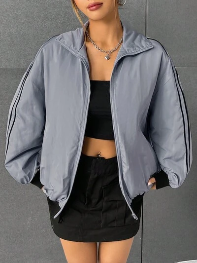 Contrast Trim Drop Shoulder Zipper Padded Coat-60%