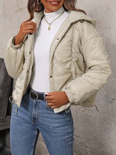 Solid Drawstring Hem Snap Button Front Hooded Winter Coats Fall Cloth For Women-60%