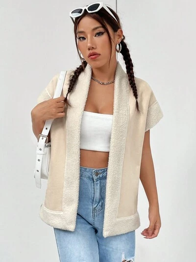 Contrast Fuzzy Trim Open Front Coat-60%