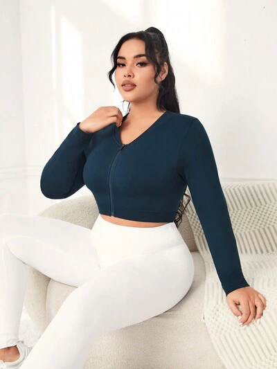 Women's Plus Size Sports V-neck Long Sleeve Shirt-60%