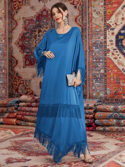 Women's Elegant Tassel Decorated Arab Traditional Long Robe Kaftan Jalabiya Dress-65%