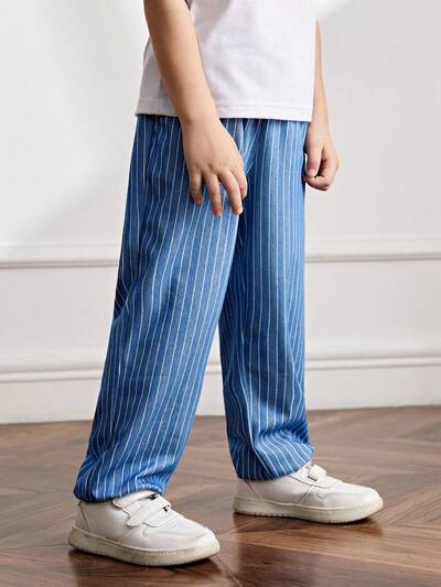 Toddler Boys' 2pcs/set Casual Straight-leg Pants With Exposed Stitching And Waist Button Closure