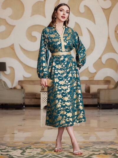 Women's Floral Print Notched Neckline Dress With Cut-Out And Weave Detail, Elegant Luxury Evening Party Style Fall Cloth For Women-32%