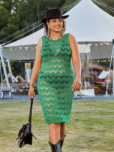 Plus Size Solid Color Round Neck Sleeveless Hollow Out Sweater Dress-65%