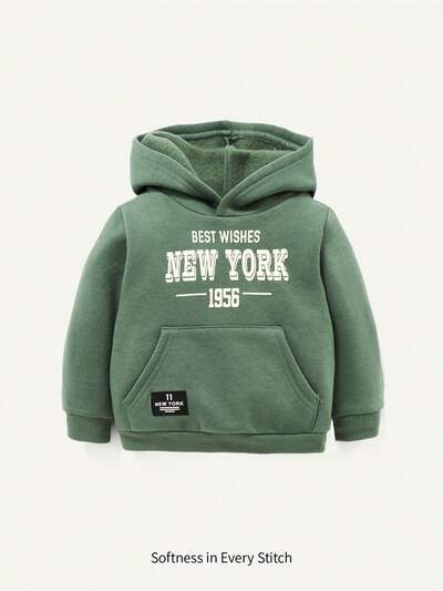 Baby Boys' Letter Printed 2pcs Sweatshirt Set With Zip-Up Pocket, Knitted Fleece Sweatshirt-65%