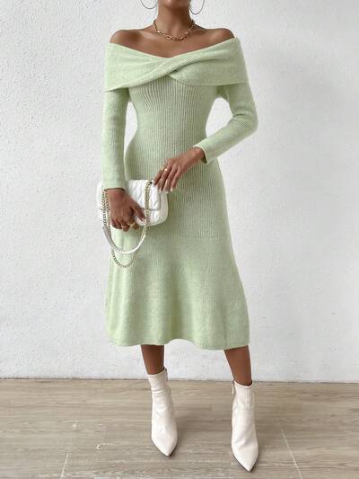 Solid Color Off-Shoulder Batwing Sleeve Sweater Dress Fall Cloth For Women-65%