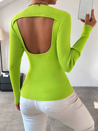 Solid Color Backless Ribbed Knitted Sweater Fall Winter-65%