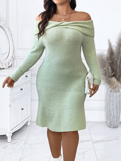 Plus Size Women's Off Shoulder Sweater Dress-52%