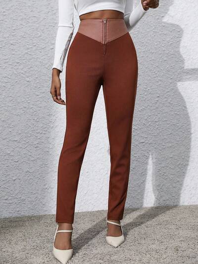 Zipper And High-Waist Color Block Skinny Pants Fall Cloth For Women-65%