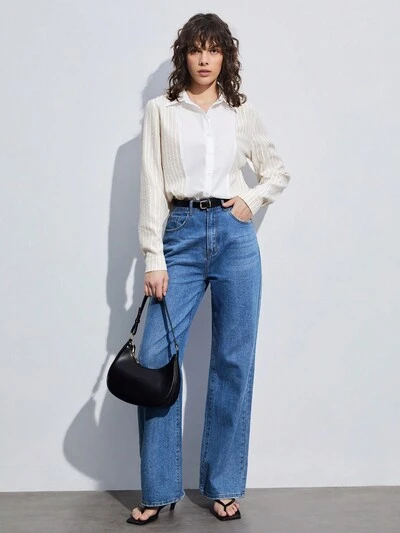 Women'S Long Sleeve Turn-Down Collar Shirt-60%