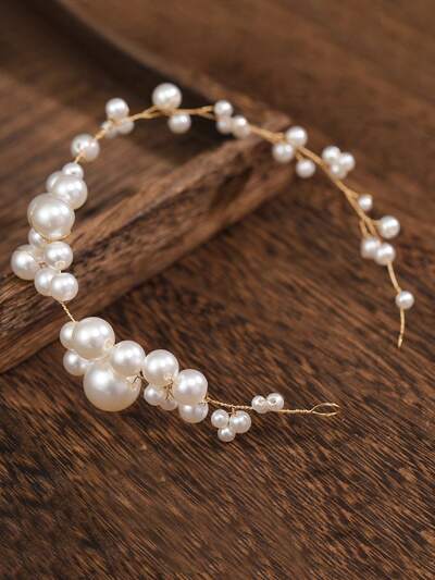 1pc Elegant Handmade Pearl Hairband For Women, Ideal For Weddings, Parties And Gifts Valentine's Day Accessories