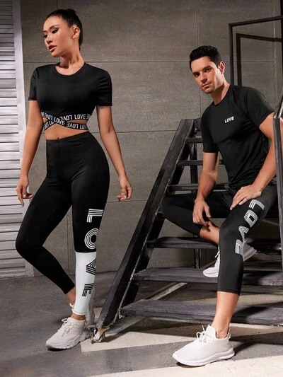 Męski zestaw sportowy w stylu Boyfriend z nadrukiem liter, obcisły, sportowy, dresowy, zestaw do ćwiczeń na siłownię, zestaw do ćwiczeń-50%