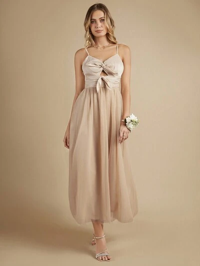 Kokarda z przodu Sukienka dla druhny na ramiączkach-60%