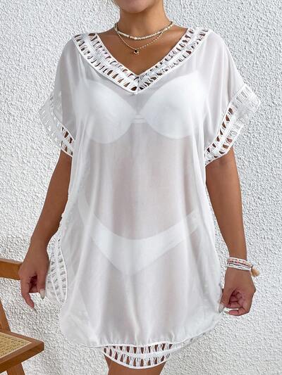 Jednokolorowy damski top typu halter i trójkątny zestaw bikini z przezroczystym nakryciem na lato-32%