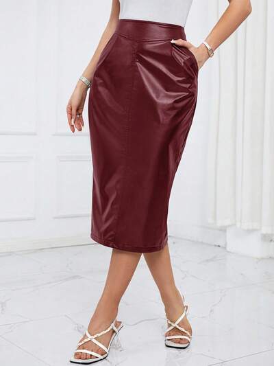 Jednolity kolor Spódnice Z Pochyły Kieszenie-65%