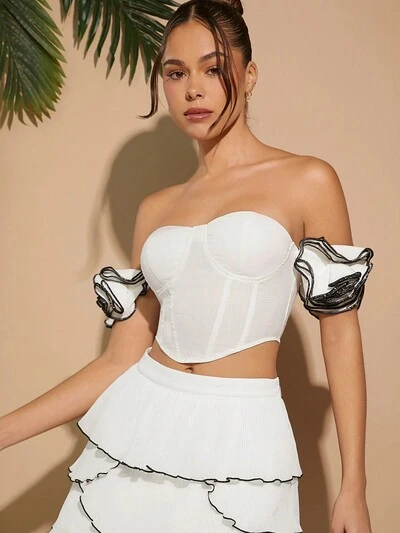 Damski list z nadrukiem zroszony wystrój Slim Fit, przycięty gorsetowy top na lato