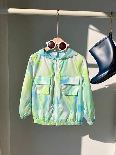 1 szt chłopcy Codzienny & Modny & Wszechstronny & Miękki & Wygodna & Makaronik Kolor Seria Barwiący & Oddychająca & Z Kapturem & Anty-UV Kurtki , Odpowiedni Na wiosnę , Lato I Jesień