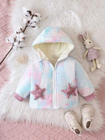 Dziewczęcy płaszcz z kapturem i pikowaniem w kształcie gwiazdy tie-dye-26%