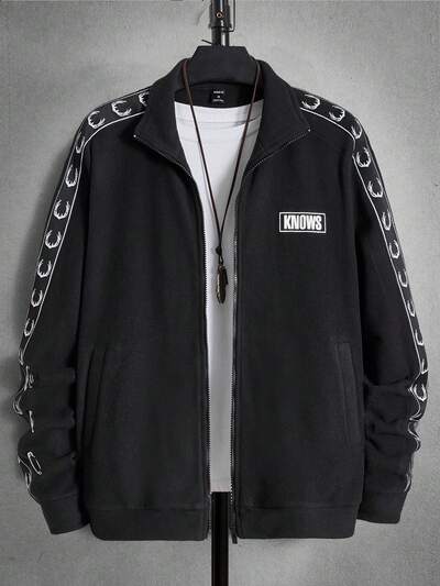 Jaqueta Peluciosa Masculina Com Design De Letra Bordada E Detalhe De Bloco De Cor-65%