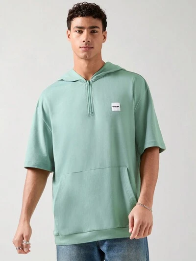 Top de malha stretch branco fresco para homem com gola redonda, meio zíper, manga curta e ajuste slim para o verão-25%