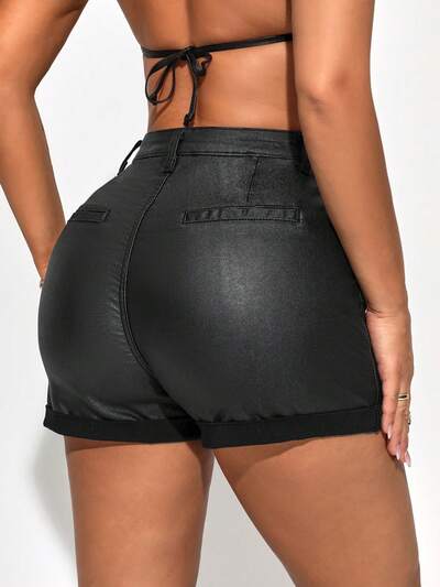 1 peça Shorts Plissados de Couro PU Femininos, Mini Saia Casual-65%