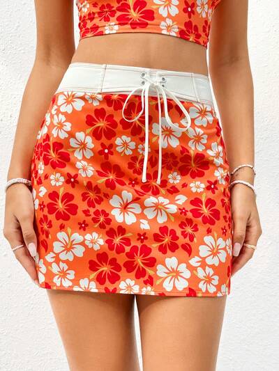 Saia De Cintura Cruzada Com Cinto De Estampa Floral Para Mulheres-36%