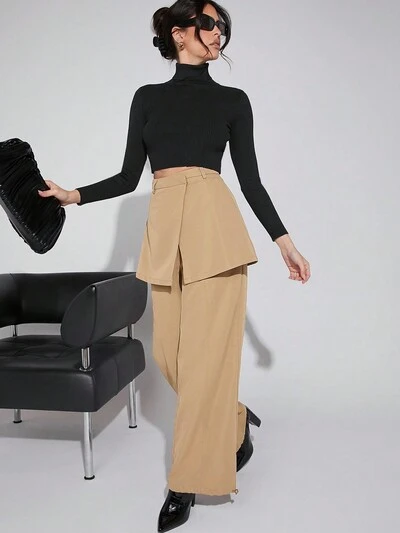 Calça feminina longa, casual e ajustada à moda, em cor sólida-65%