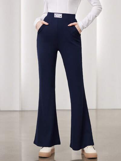 Calça feminina casual de cor sólida, ajustada, versátil-65%