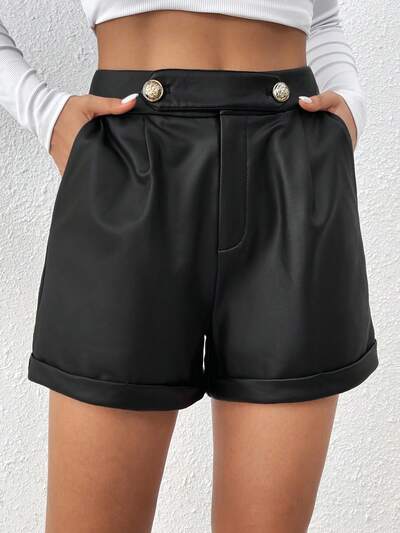 Shorts De Bainha Dobrada Com Detalhe De Botão-63%